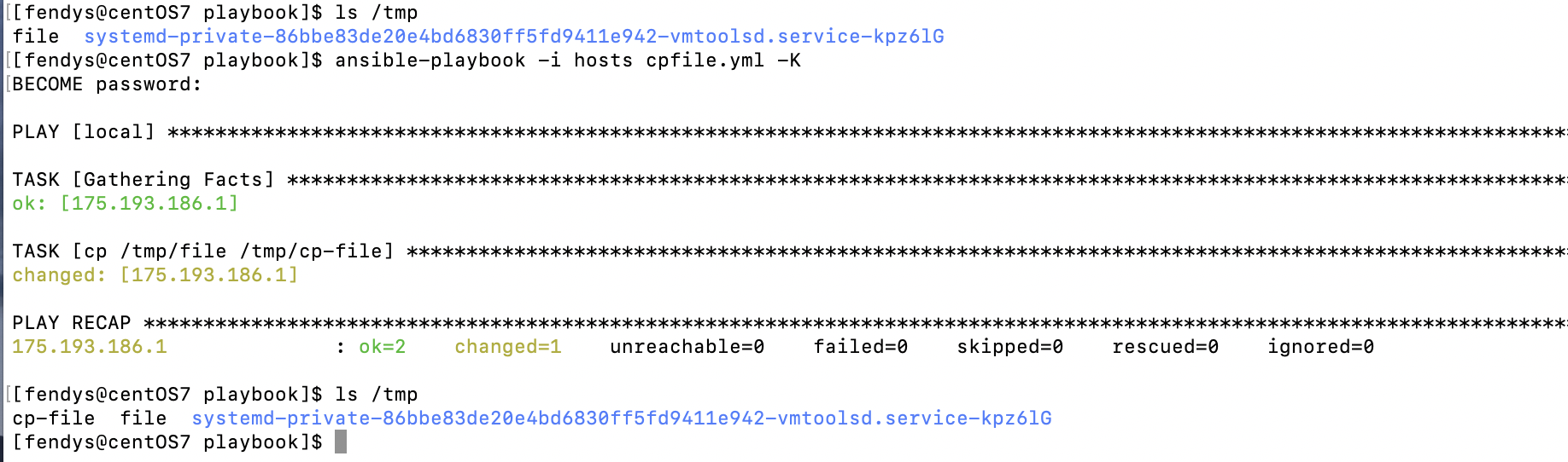 * 실행 방법 #ansible-playbook -i hosts cpfile.yml -K